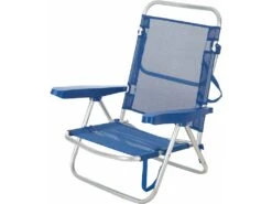 Consigue esta fantástica silla de playa con estructura plegable de aluminio ligero y resistente, justo lo que buscas para disfrutar de su uso, transporte e incluso su almacenaje cómodo. Muy fácil de utilizar, pues tiene varias posturas que te permiten estar sentado o tumbado, en pocos segundos y de forma segura pasas de una postura a otra. ¡Con tela y apoyabrazos de color azul oscuro muy resistente! ¡Ideal para su uso en playas, piscinas y campo!