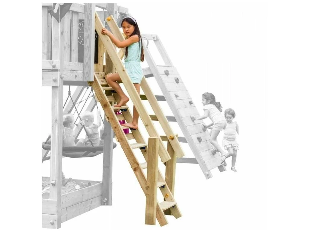 No dejes escapar esta oportunidad y disfruta de una divertida y práctica escalera de madera, que podrás añadir al parque infantil. Un artículo muy fácil de instalar, con barandilla para facilitar el acceso al parque a los niños y fabricada en materiales de gran durabilidad y calidad.
