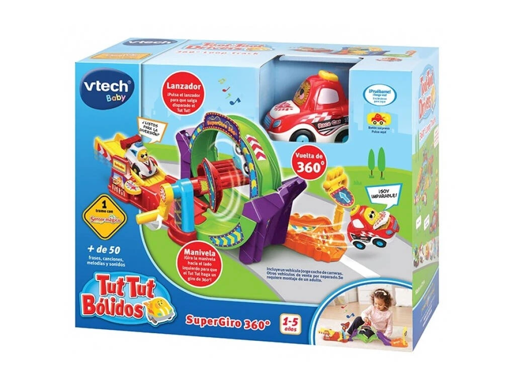 Playset interactivo Tut Tut que incluye a Jorge el coche de carreras, un sensor mágico que activa frases, sonidos y canciones al pasar sobre el cualquier vehículo de la gama Tut Tut Bólidos. Forma diferentes circuitos uno de ellos con la manivela que hará que el vehículo gire 360º. Compatible con todas las pistas, playset y vehículos de la gama Tut Tut puedes unir los tramos y hacer un súper circuito, consigue en esta página web otros playset.
