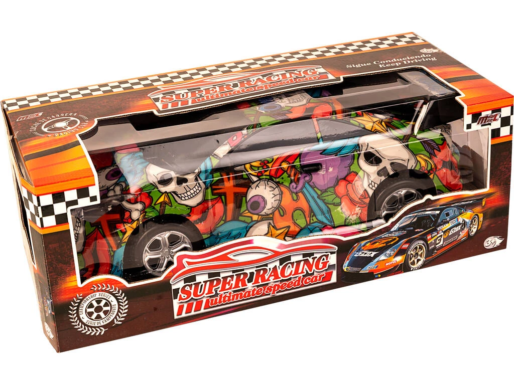 Incluye: 1 vehículo de fricción Racing Car Graffiti.