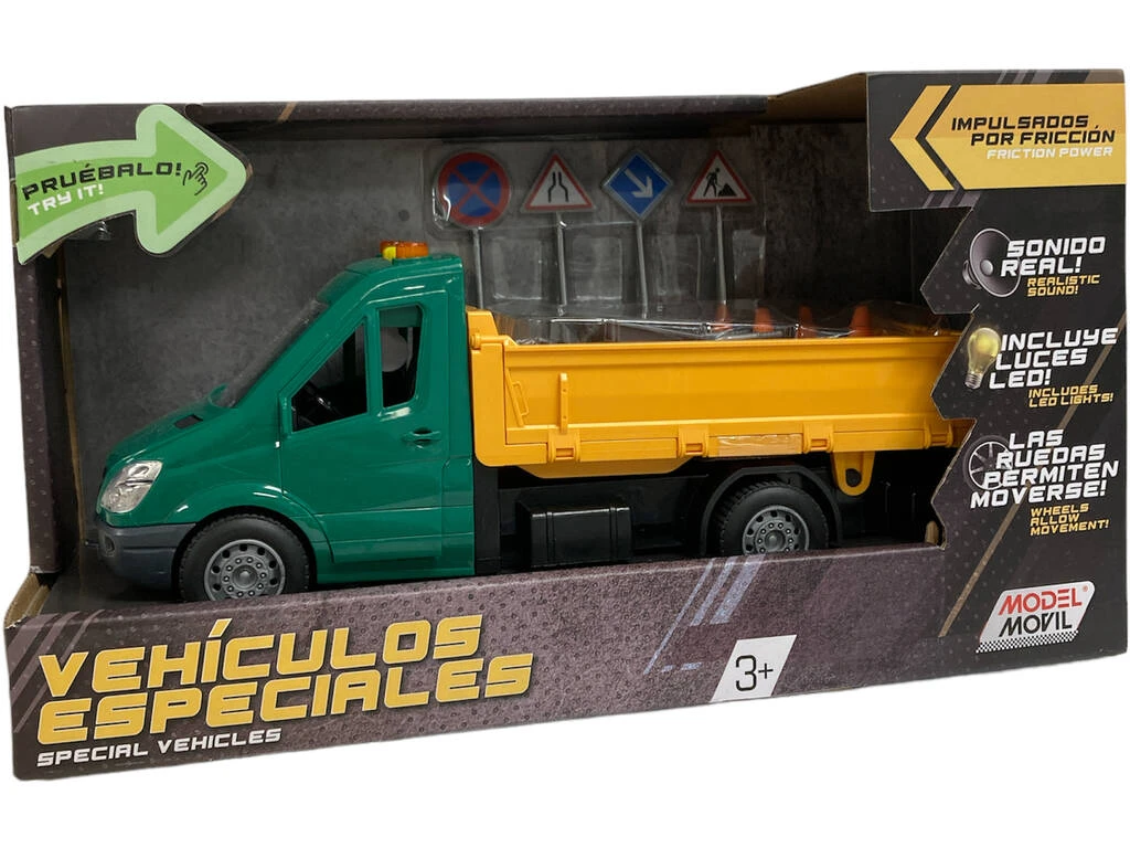 Consigue este genial pack que incluye todo lo que buscas para disfrutar de horas de diversión a escala, junto a un camión de la construcción muy especial. Activa las luces y sonidos del camión, coloca todas las señales y disfruta del juego de imitación más logrado y genial hasta el momento.